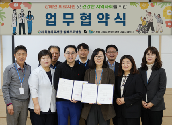 [경기북부탑뉴스 박종국 기자] 의정부시발달장애인평생교육지원센터(이하 ‘센터’)는 희경의료재단 성베드로병원(이하 ‘성베드로병원’)과 2025년 3월 13일 장애인의 의료 접근성 향상 및 지역사회 건강 증진을 위한 협약을 체결했다.