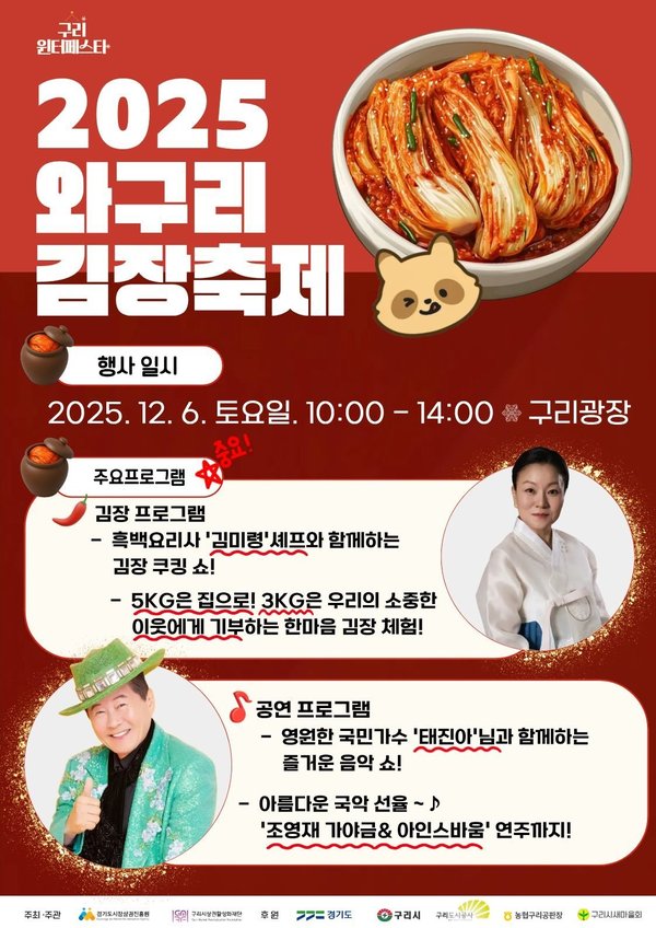 백경현 재단 이사장은 “와구리 김장축제는 체험·즐거움·나눔이 조화를 이루는 뜻깊은 행사”라며 “지역 소상공인과 시민의 따뜻한 마음이 모여 구리를 대표하는 겨울 축제로 성장하길 기대한다”라고 말했다.