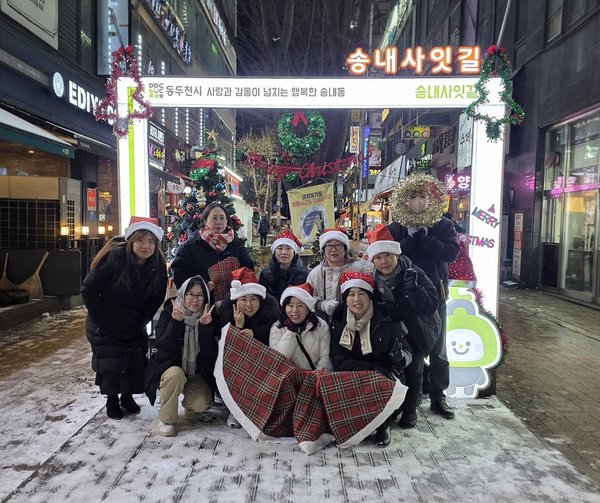 크리스마스 트리 설치는 송내동 주민자치위원회의 특색사업 중 하나로, 지난 9월 밝고 화사한 색감으로 새롭게 단장한 화단과 무대 공간과 어우러져 한층 더 아름다운 거리 풍경을 연출했다.
